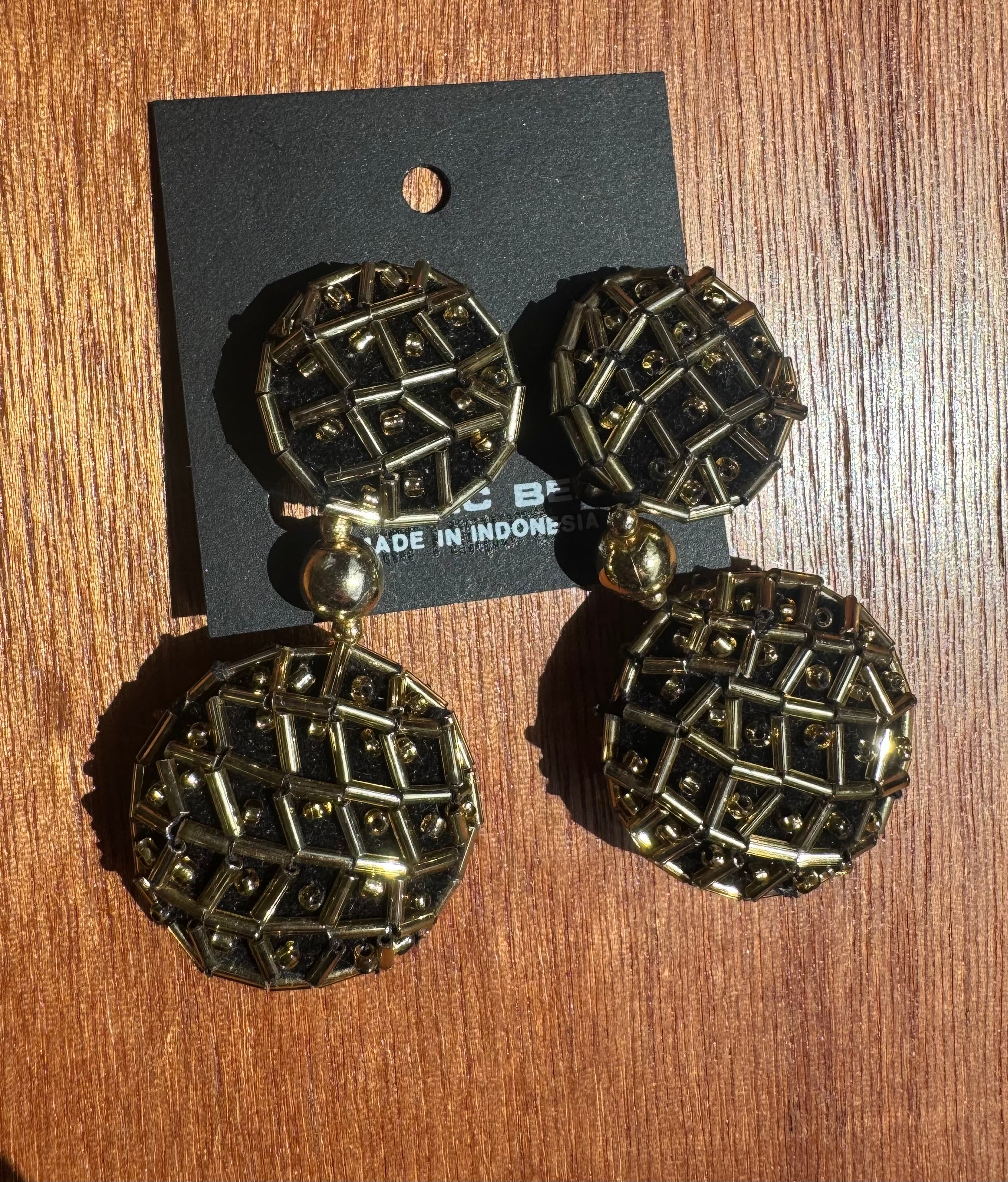 Vintage Clips ons, black velvet with gold beads, 60mm.