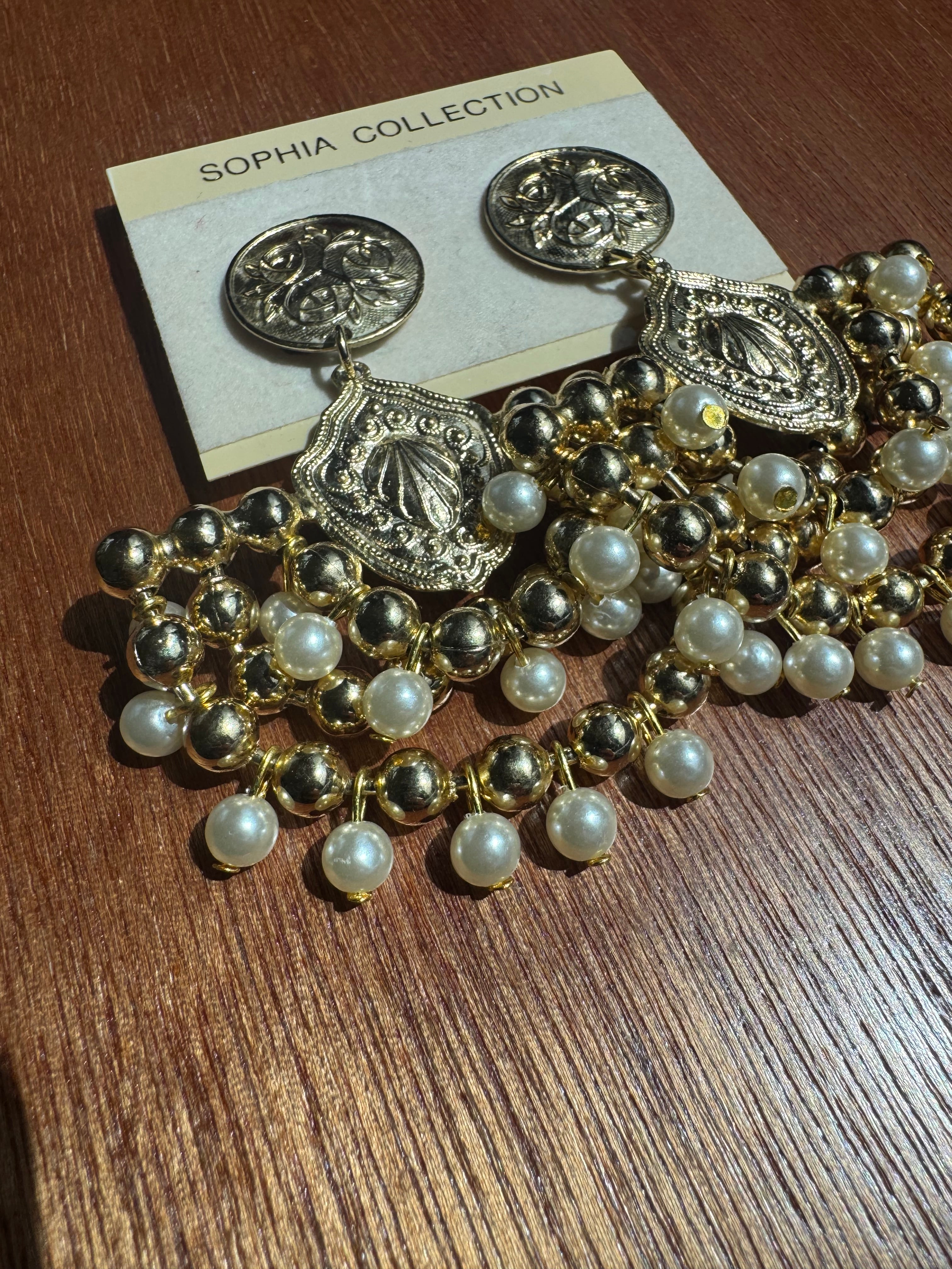 Gorgeous vintage pearl and gold chandelier earrings, 80mm long, 60mm wide
