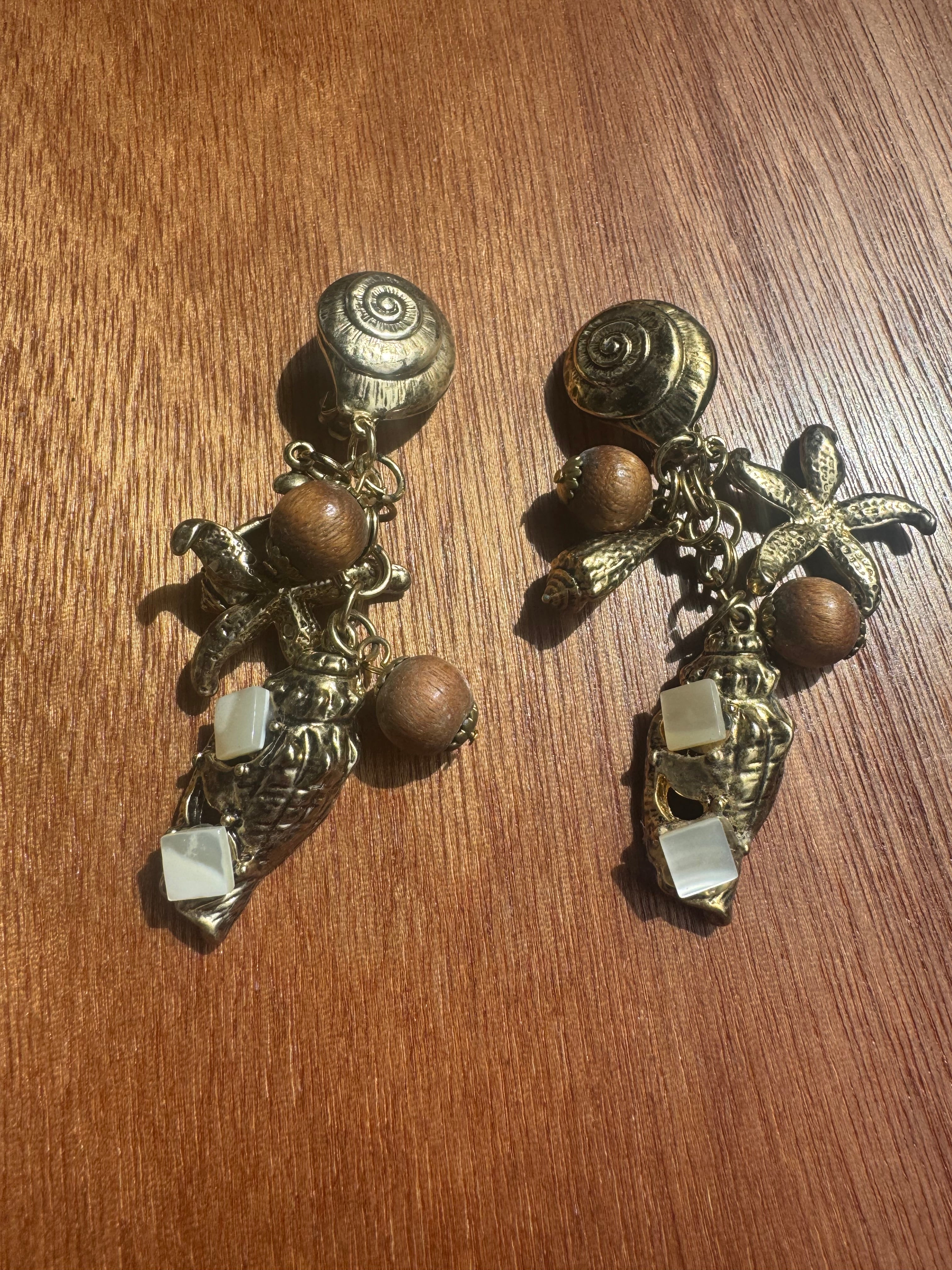 Stunning Vintage Dangly earrings, with Starfish, heels and wooden beads charm.