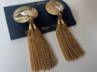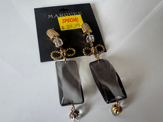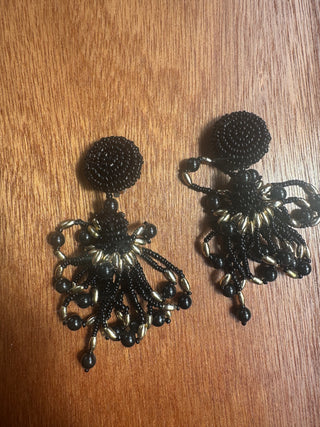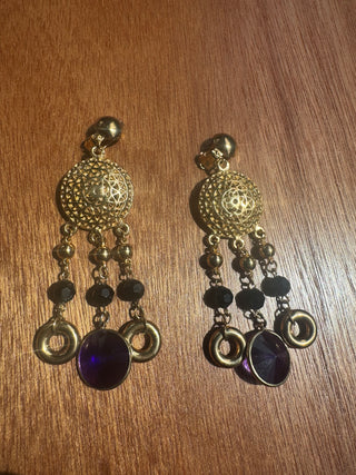 Vintage Clip On Dangly Earrings, Gold with Black faceted beads and purple glass