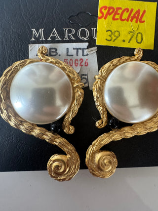 Vintage Costume Pink Gemstone & Enamel Earrings - Signed Piscitelli- Made in USA