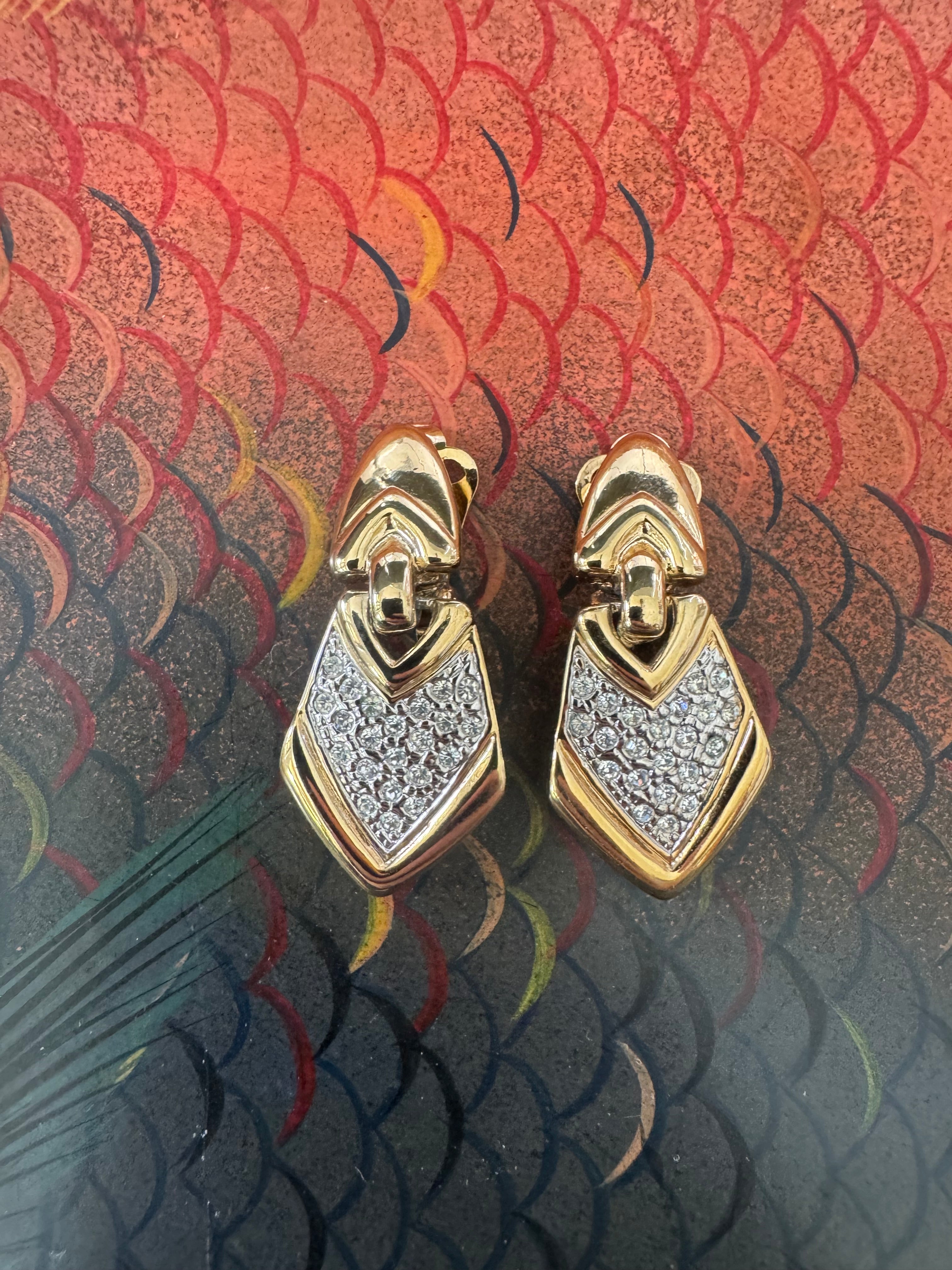 Elegant Vintage Chevron Clip ons - Gold Tone with Crystals