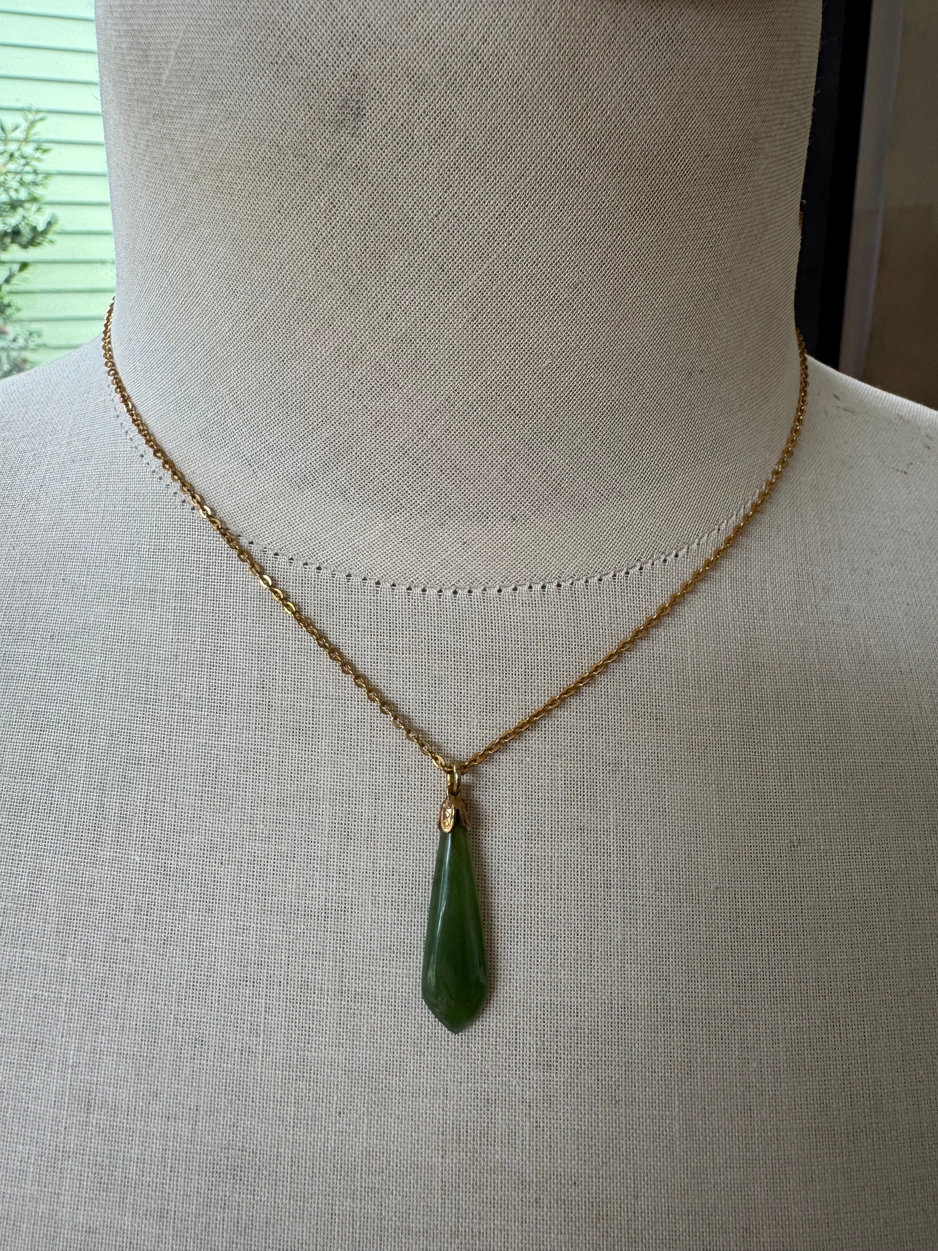 Jadeite Pendant with Gold Tone Chain, pendant is 30mm