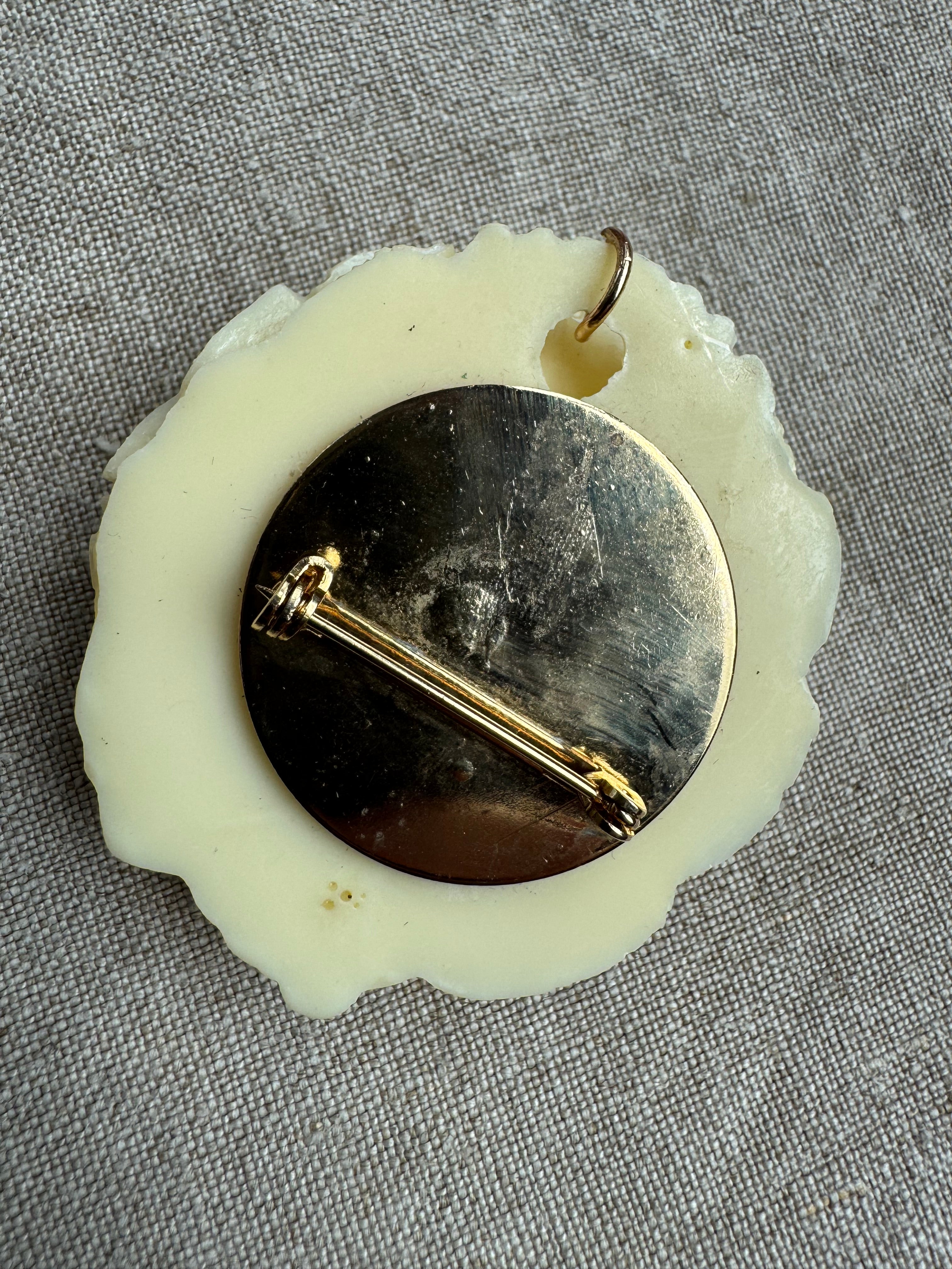 Pre- 1950s Celluloid Carved Rose Brooch/Pendant intricate carved, beautiful ivory tone. Brooch back looks like a later addition.