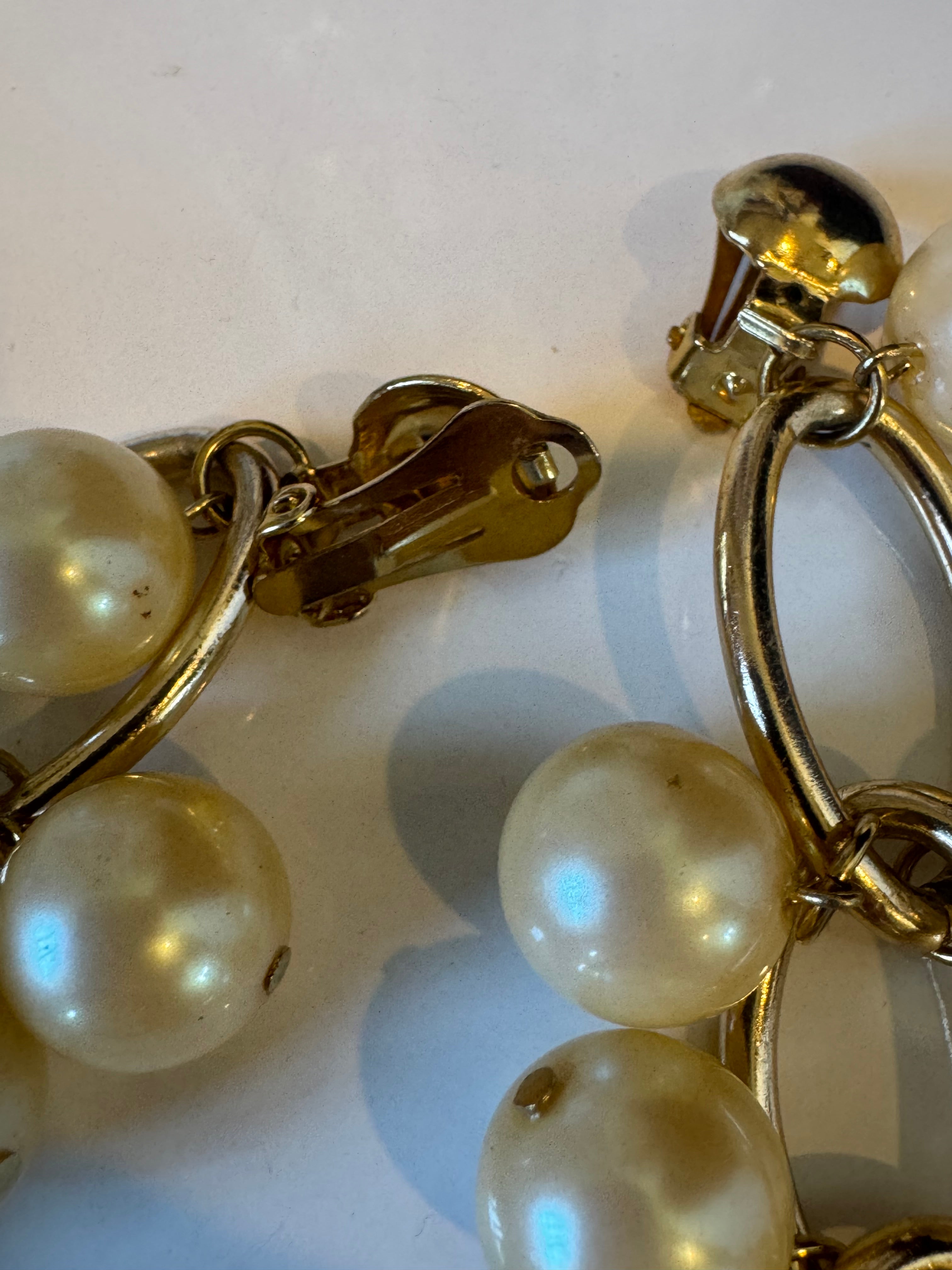 Vintage Dangle Clip on Earrings. Plastic pearls and chain links. Gold Tone
