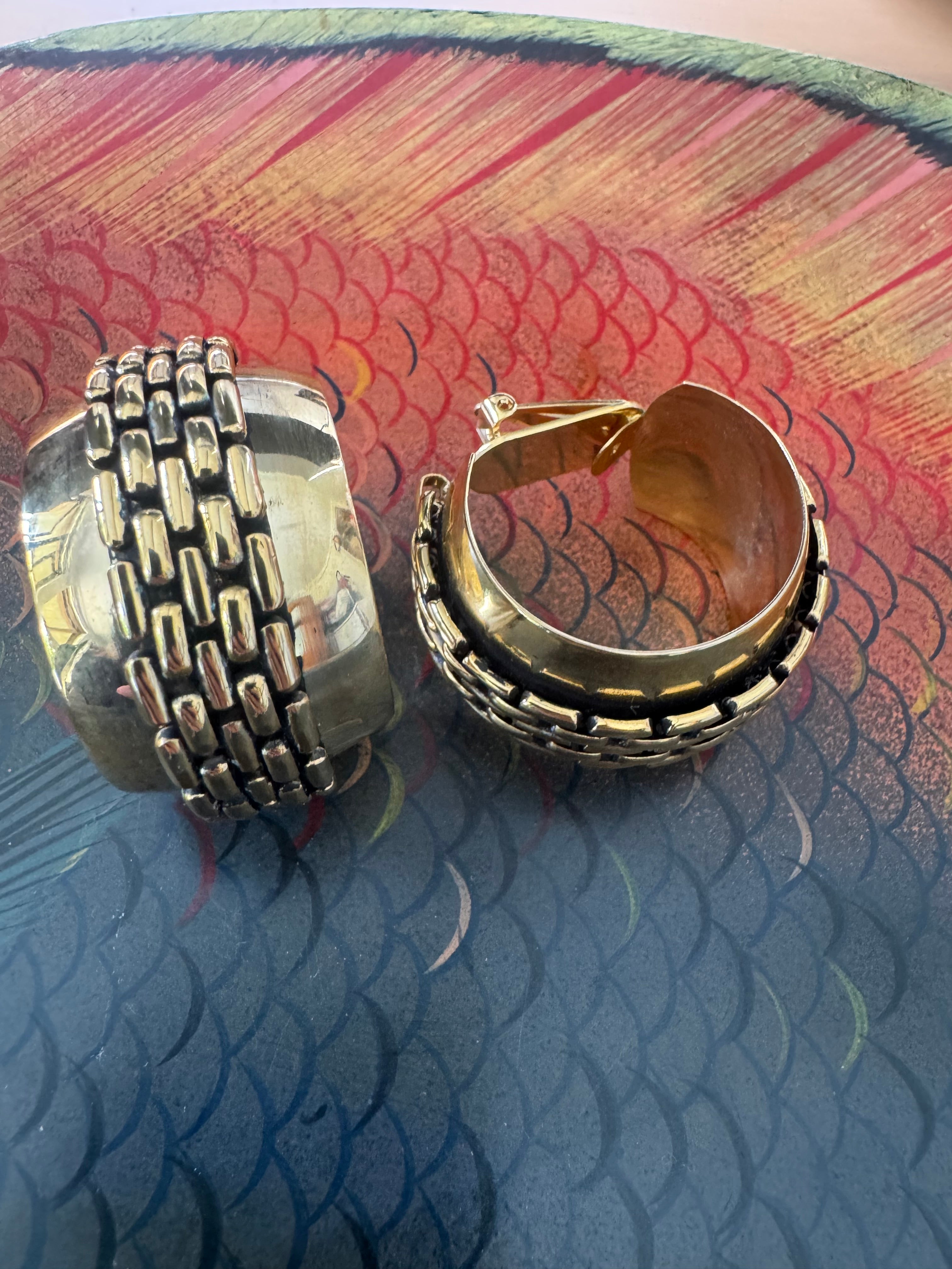 Vintage Gold Tone Wide Hoop clip ons