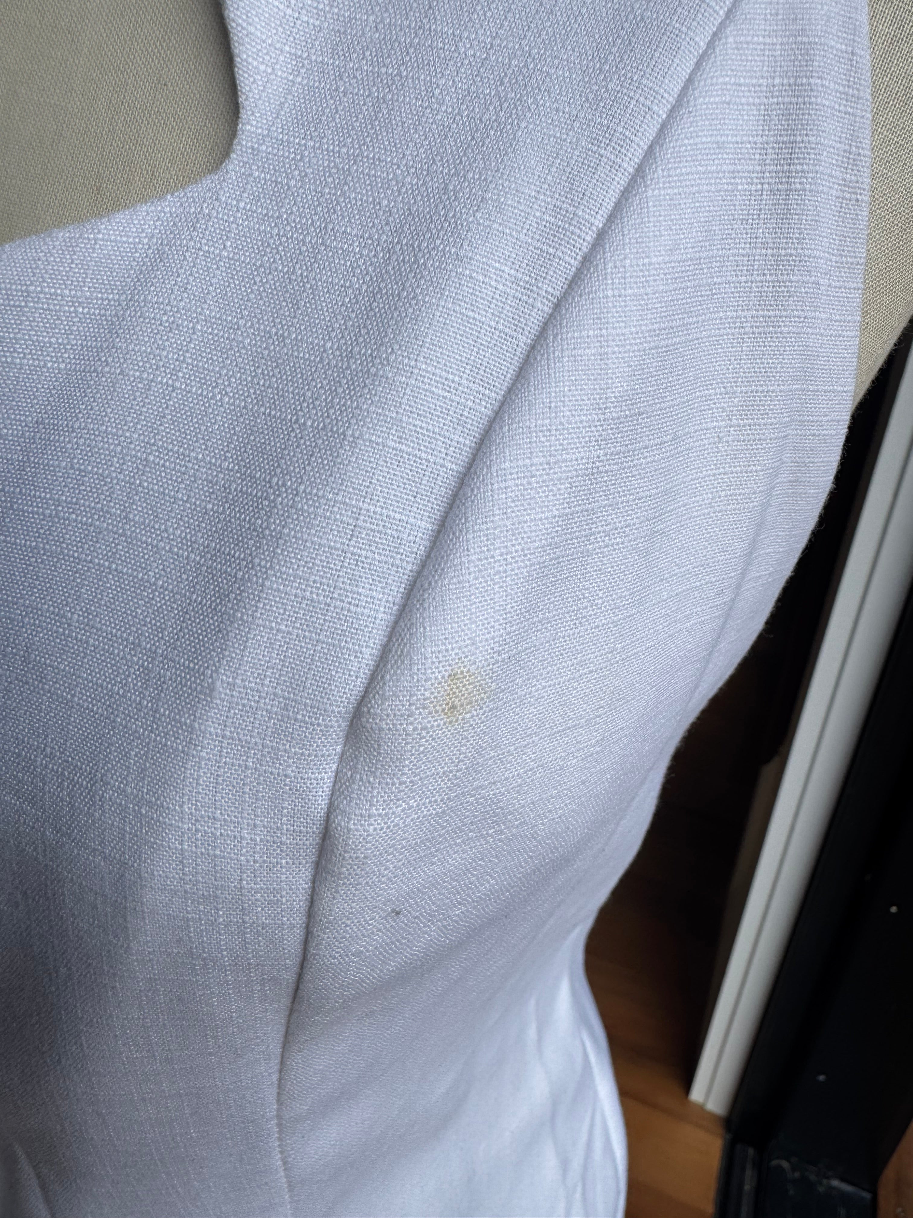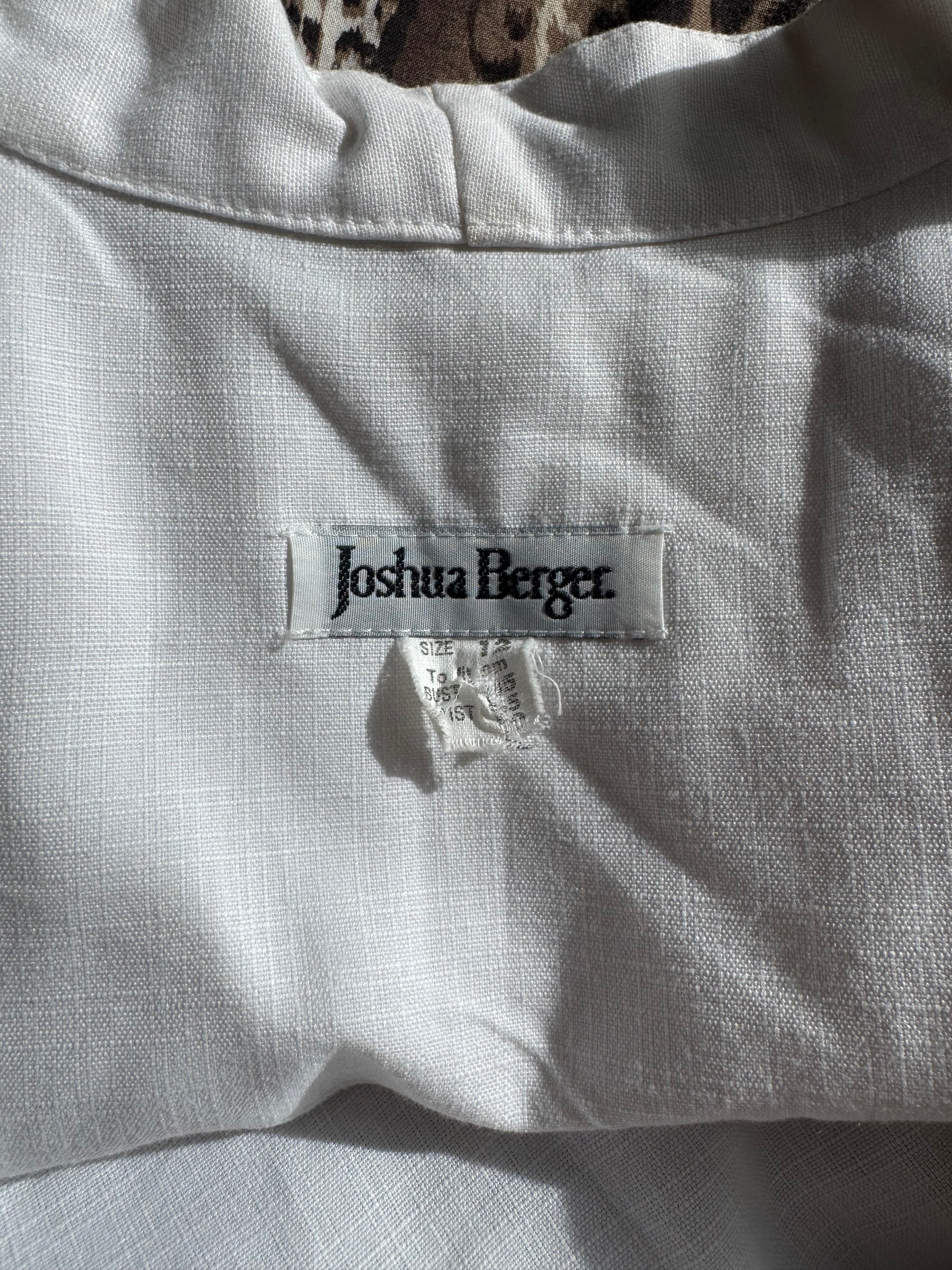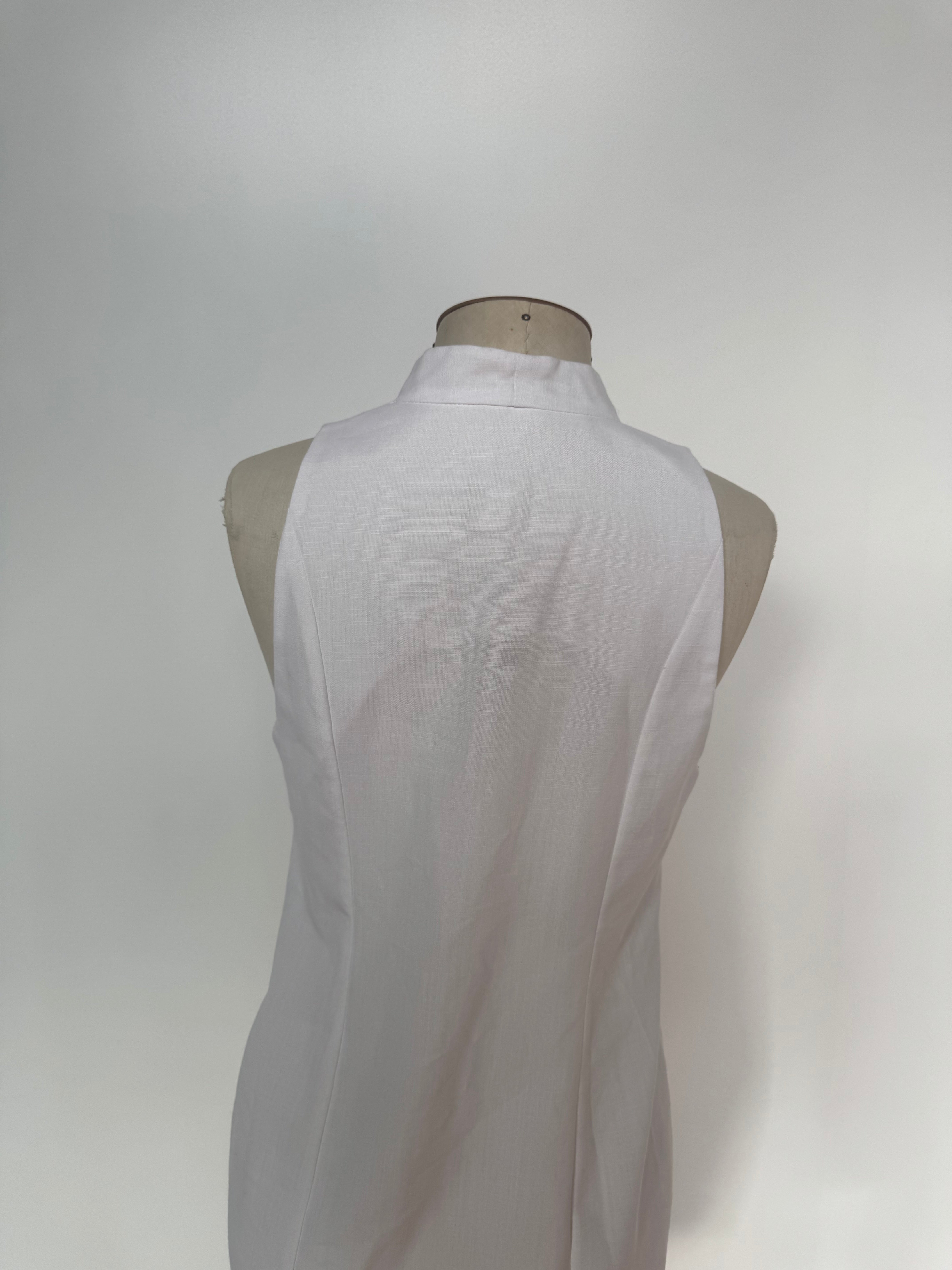 Stunning Joshua Berger White Sleeveless Vest/Dress - interesting scalloped neckline with gorgeous vintage gold buttons with white rose inner. Good vintage/used condition. Polyester/Rayon fabric composition, Made in Australia.