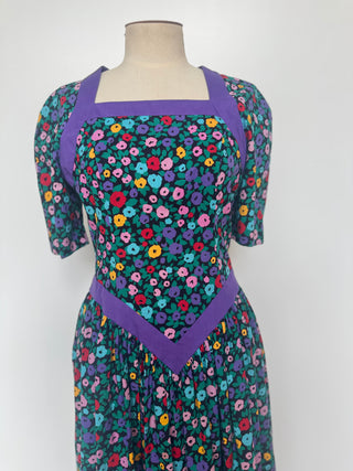 Vintage Ann Hobbs for Cattiva Silk with Gold thread Bright 2 Piece Ruffle Dress - Size 8