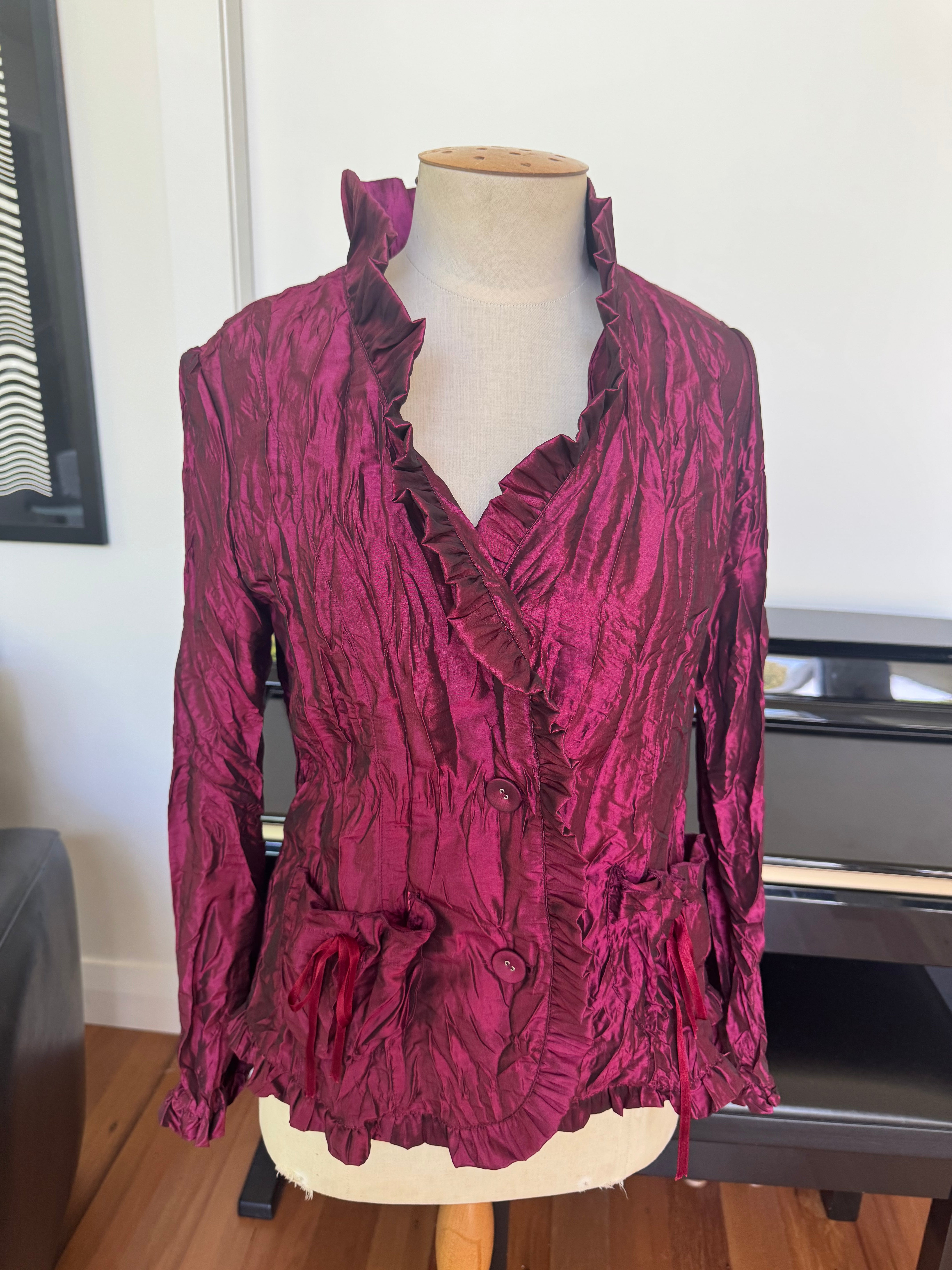 Y2k Crush look Ruffle Jacket, with velvet trim detail and ruffle neck and sleeves